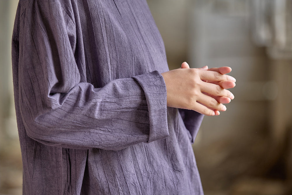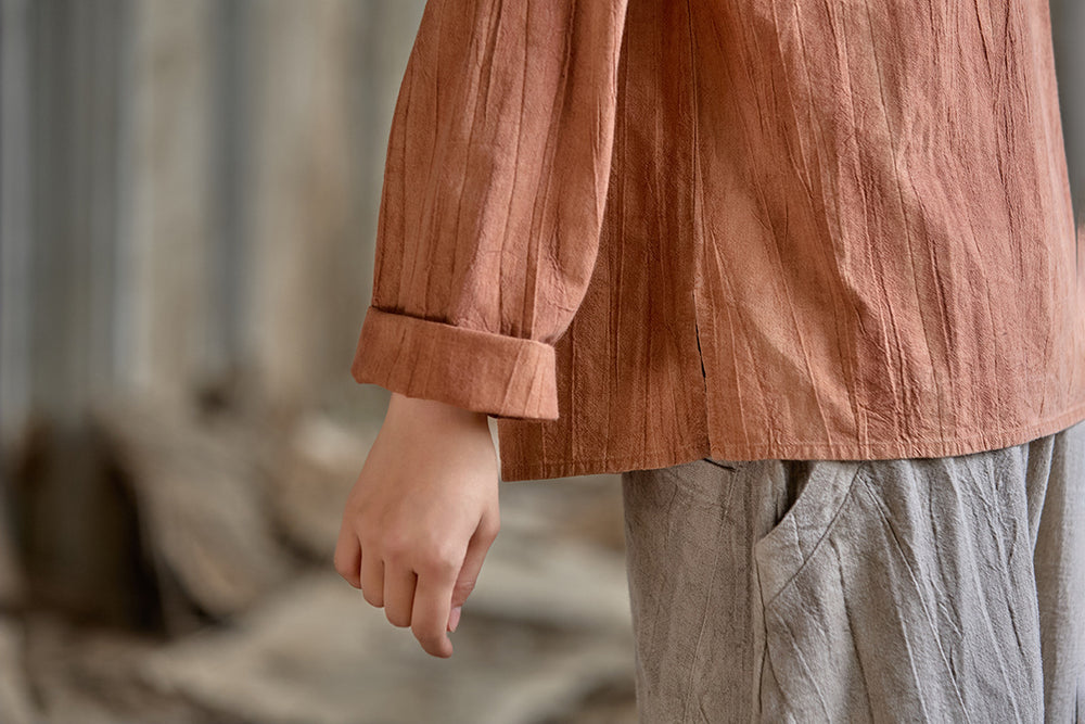 Bề mặt vải có vân tự nhiên, nhăn nhẹ, mang lại cảm giác thoải mái mà vẫn giữ được nét thanh lịch riêng.