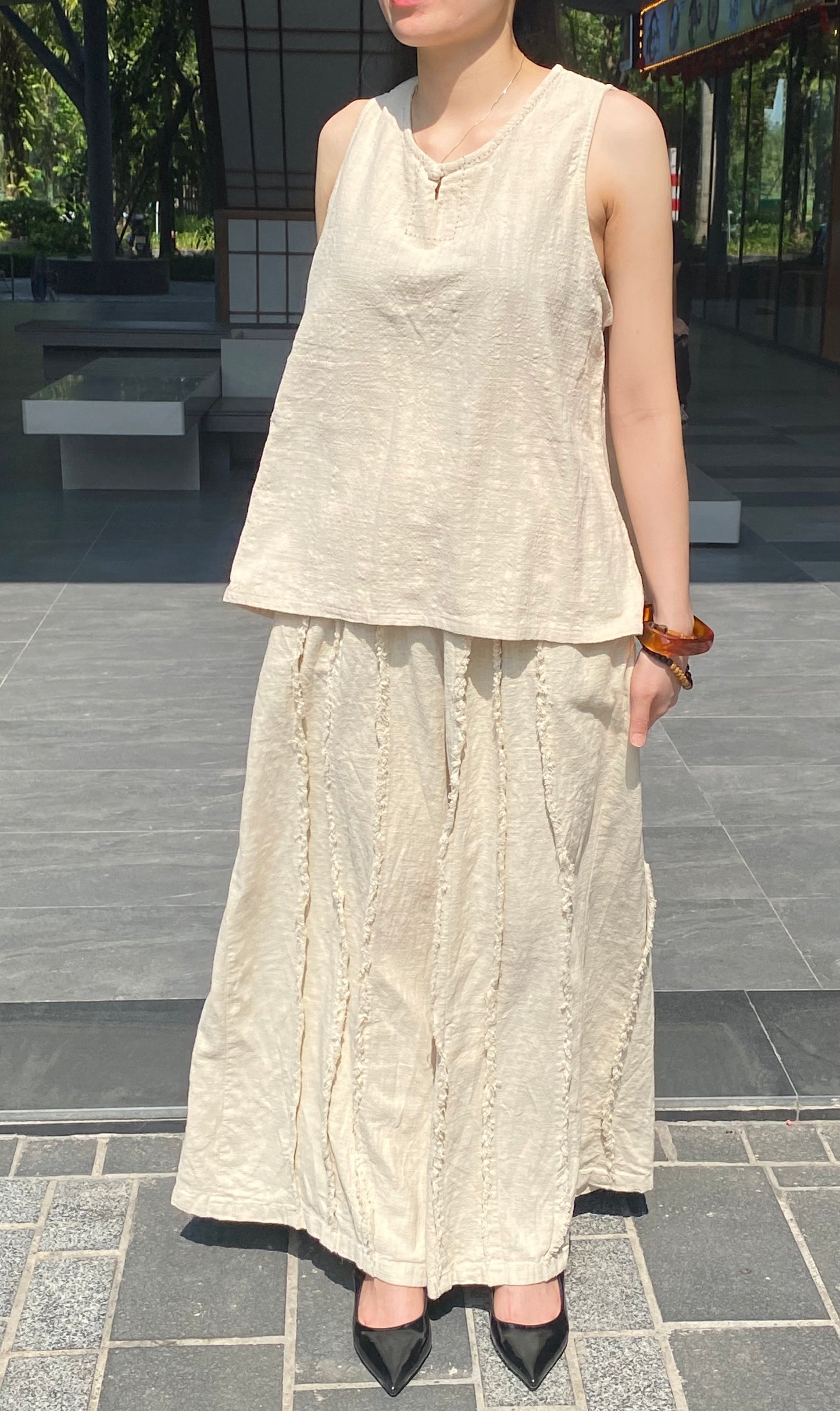 Áo sát nách vải gai dầu rayon mềm rủ tôn dáng