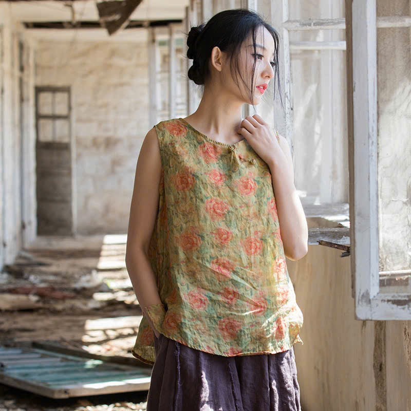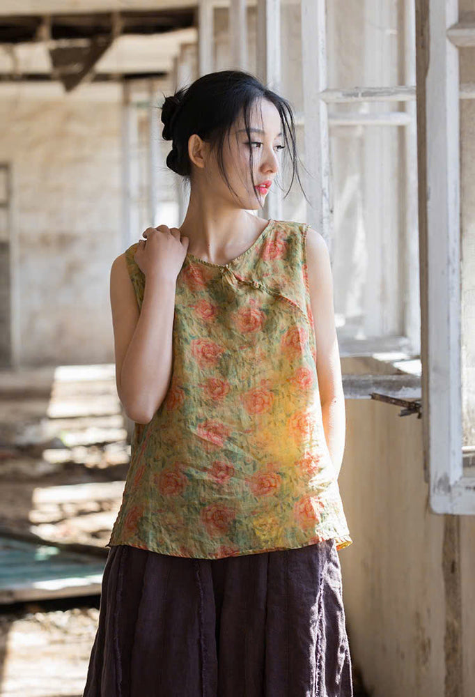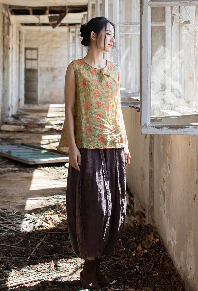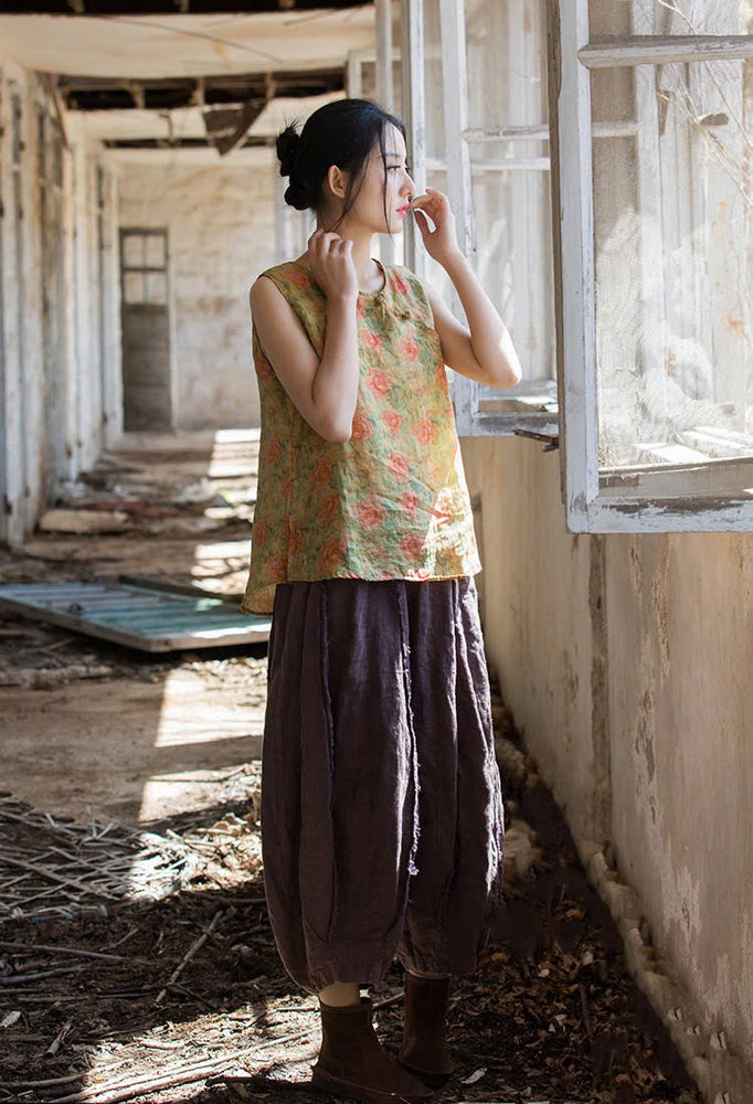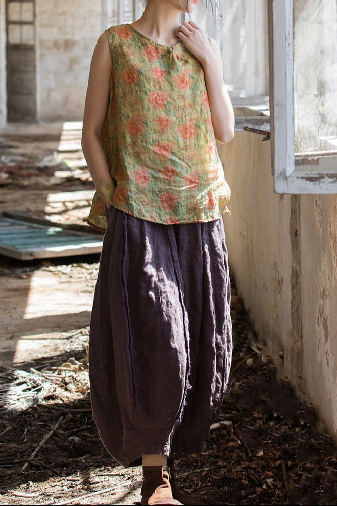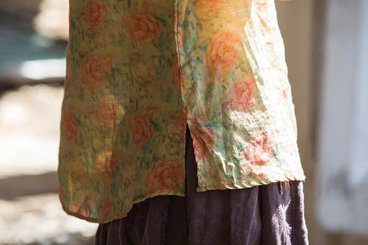 Áo hoa hồng hạ chất liệu gai dầu sợi 100% in họa tiết kiểu cổ điển ấm áp kết hợp vói quần bí lớn thiết kế ghép mảnh nhiều lớp màu sắc trầm. Tạo nên một tổng thể tràn đầy sức sống và mong manh dịu dàng.