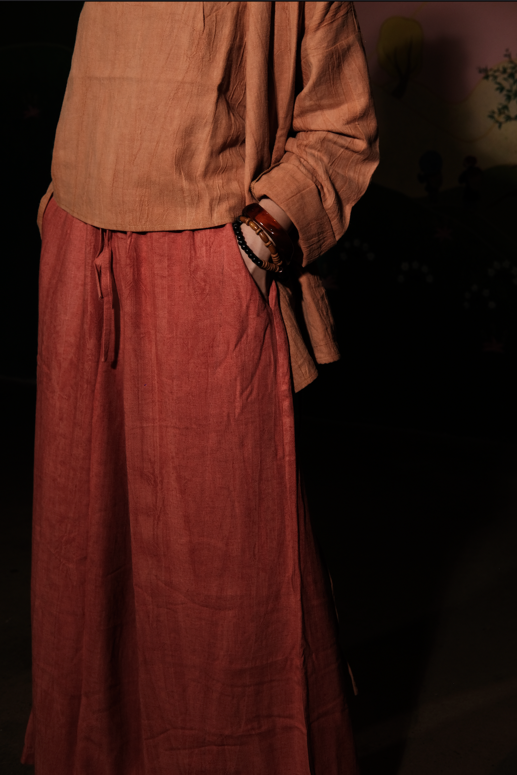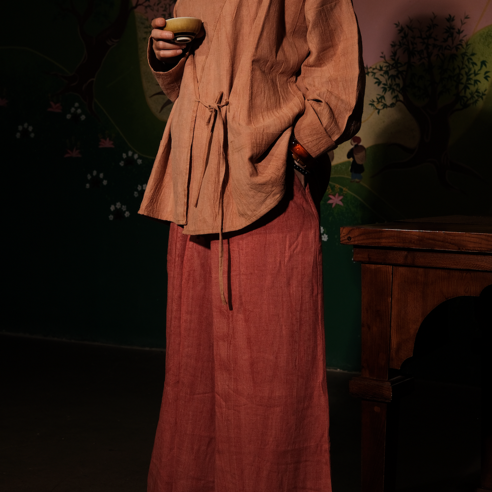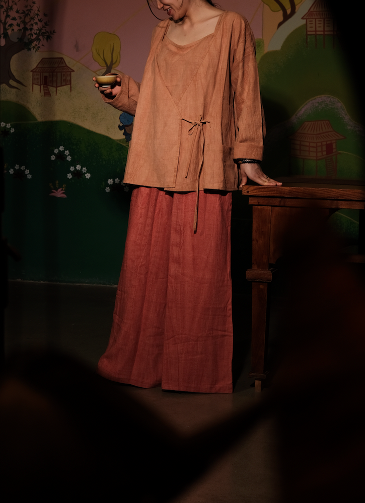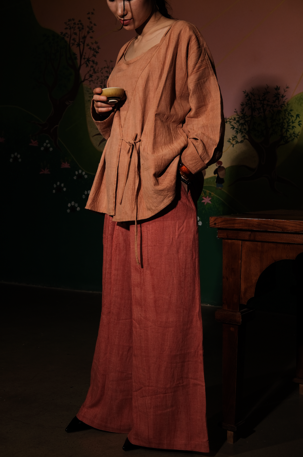 Rủ mềm như nước, set áo chén thiền và quần linen là một sự kết hợp thẩm mỹ và ứng dụng